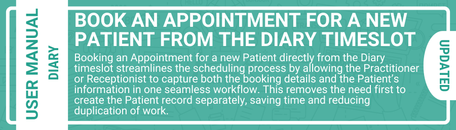Web App: Book an Appointment for a new Patient from the Diary Timeslot