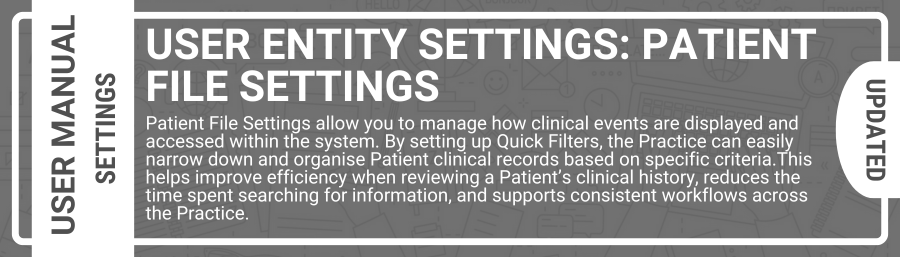 Web App: User Entity Settings: Patient File Settings by Jaco Swart - Friday, 31 October 2025, 4:18 PM Number of replies: 0 Permalink Show parent