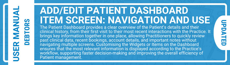 Web App: Add/Edit Patient Dashboard Item Screen: Navigation and Use
