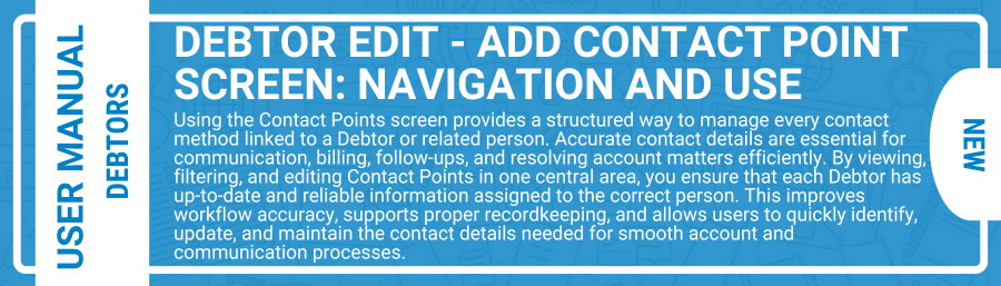 Web App: Debtor Edit - Add Contact Point Screen: Navigation and Use