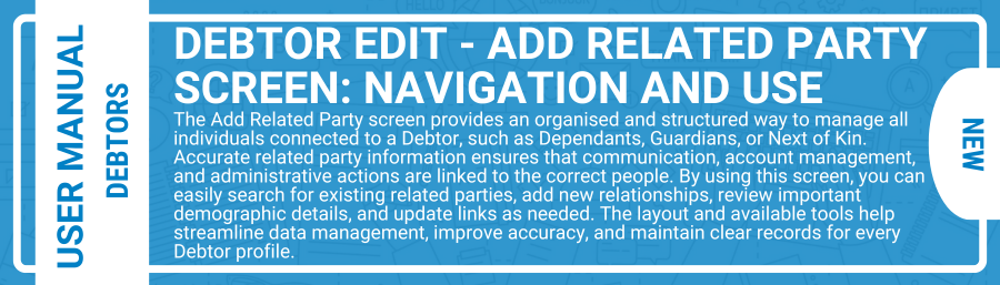Web App: Debtor Edit - Add Related Party Screen: Navigation and Use