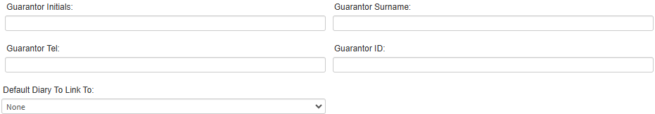 - Click on the Guarantor Surname field to enter the surname of the person who will take financial responsibility for the account.