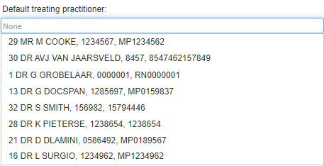 - Select the desired Default Treating Practitioner from the drop-down menu that will become available whilst typing, to link the desired Practitioner to the new Debtor.