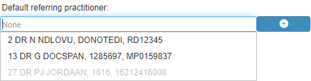 - Select the desired Default Referring Practitioner on the drop-down menu that will become available whilst typing, to link the desired Practioner to the new Debtor.