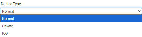 - Click on the Debtor Type drop-down menu to select an appropriate option.