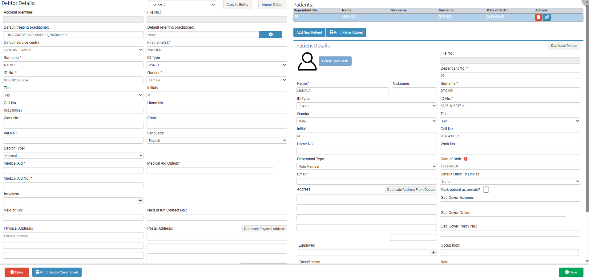 ?Please Note: Every Debtor is required to have a Patient/Dependant, even if the Debtor is the Patient. For an extensive explanation of how to add new Dependants/Patients, please refer to the user manual: How to Add New Dependants (Patients).