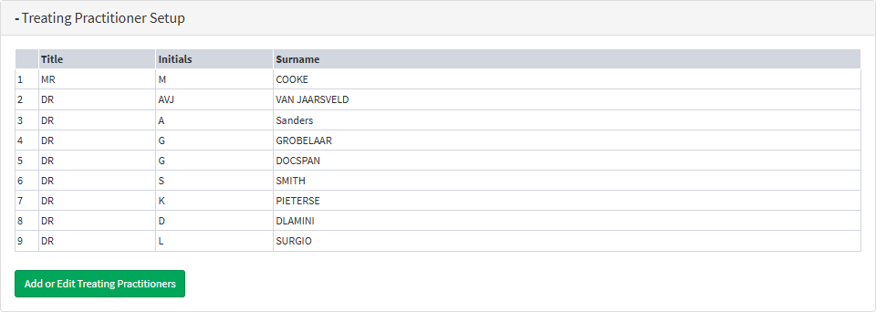 - For more information regarding the Treating Practitioner Setup panel, please refer to the user manual: Adding a Treating Practitioner from the Settings Screen.