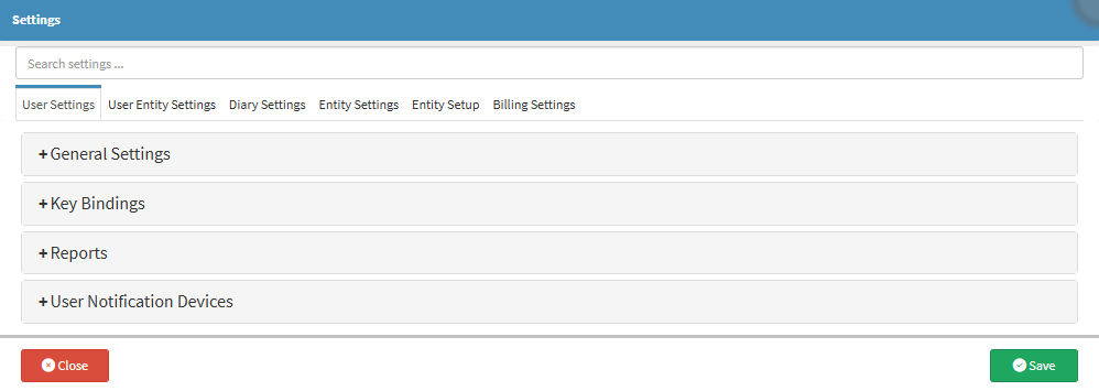 - Click on Close to close the settings, no changes that have been made will be saved.