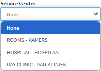 - Click on the Service Center drop-down menu to select the default location for the specific Booking Type, in rooms or in the hospital.