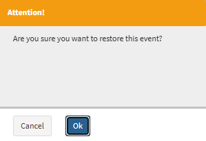 - An Attention! pop-up will appear to ask if you are sure that you would like to Restore the Clinical Event.