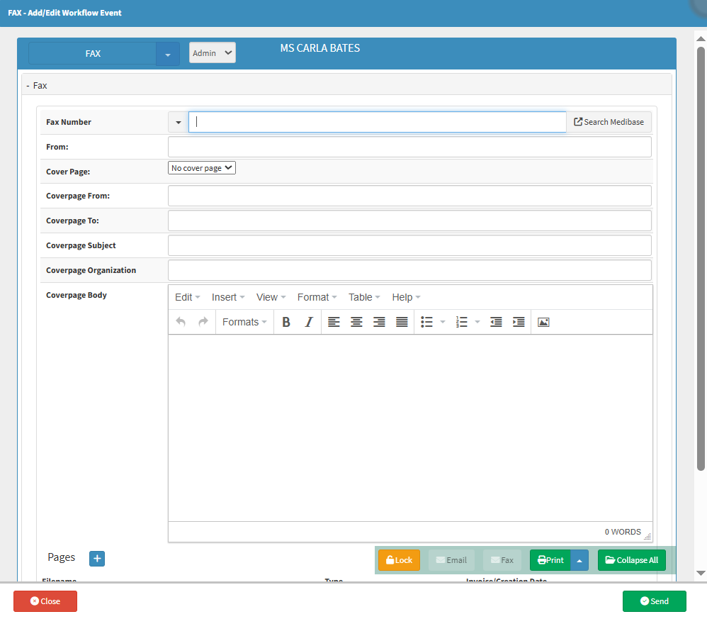 - For more information regarding the Fax- Add/Edit Workflow Events screen, please refer to the user manual: How to Send a Fax From a Clinical Form.