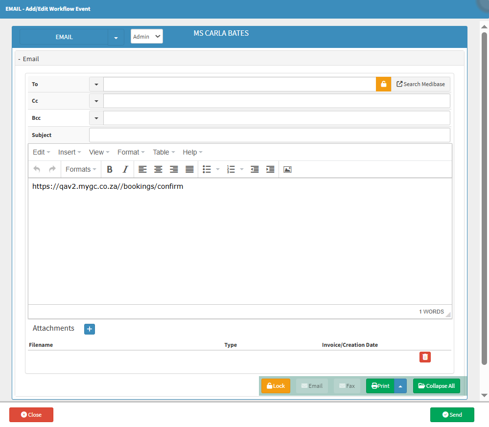 - For more information on how to send an Email, please refer to the user manual: Send an Email.