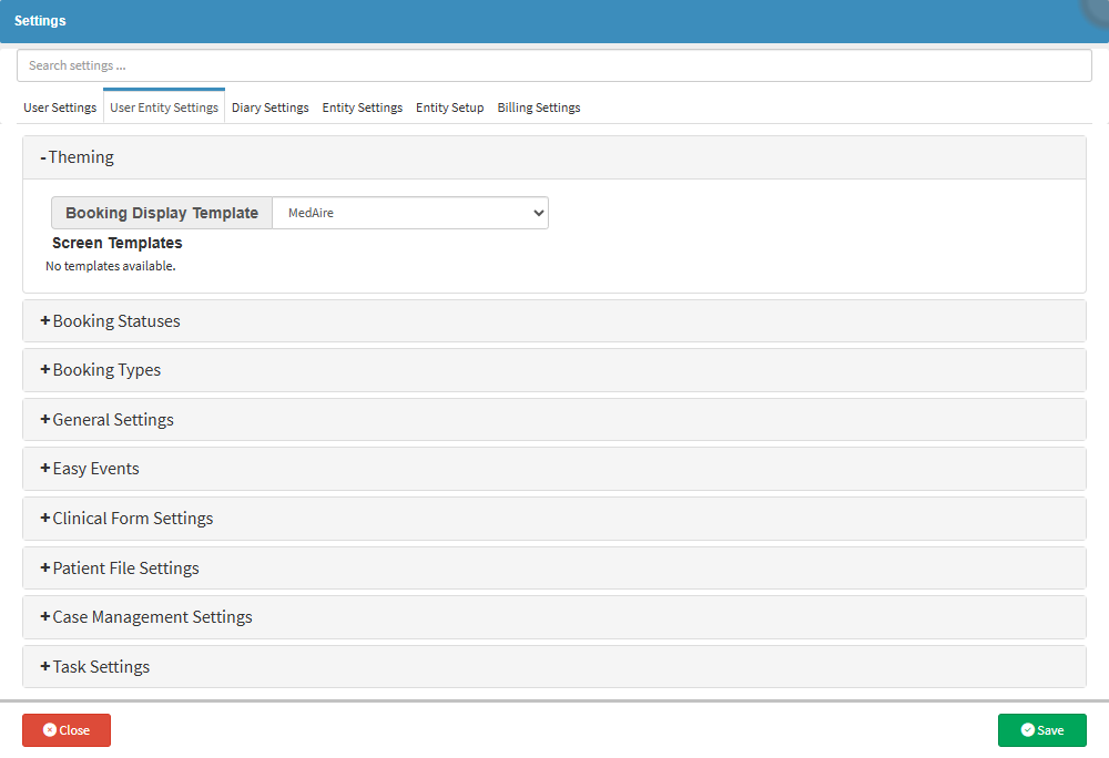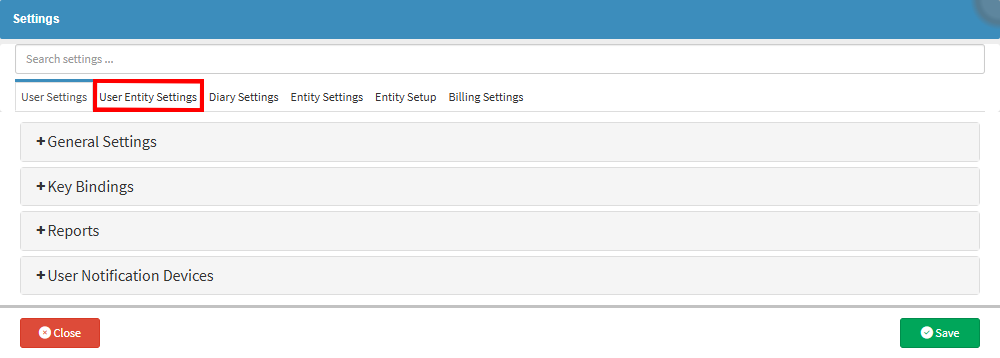 ? Please Note: User Entity Settings will always override Entity Settings and Diary Settings.