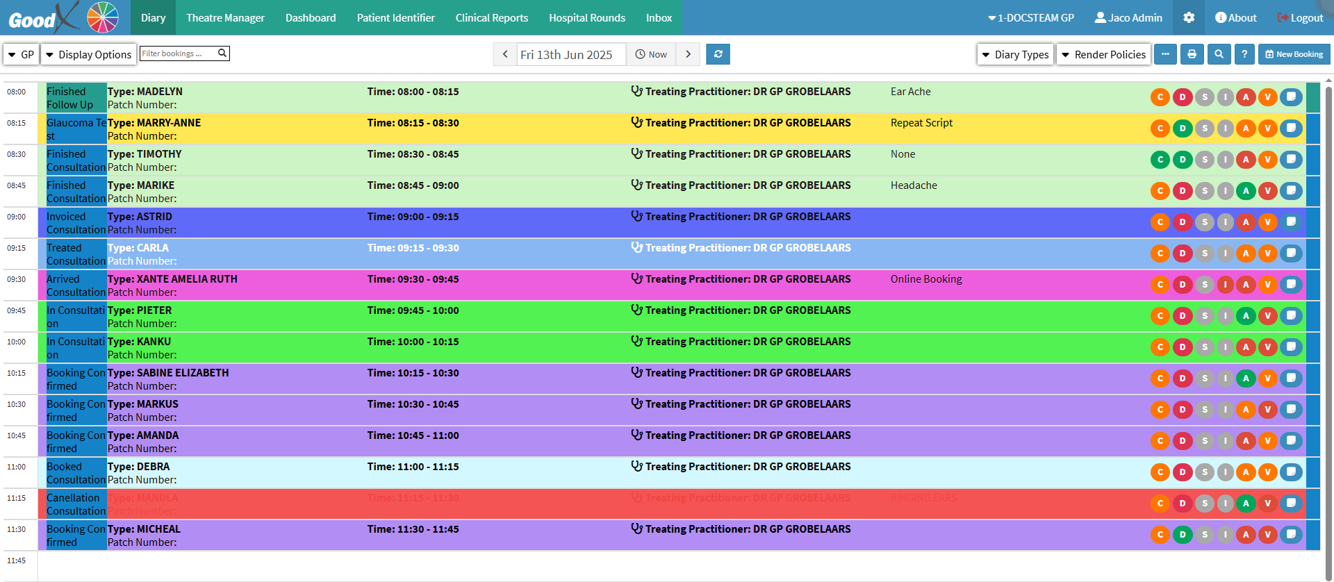 Theming allows you to customise how bookings and booking fields appear in your Diary screen, to suit your workflow and preferences. Customising the layout and look of your bookings improves visibility, reduces confusion, and will help you work more efficiently with different booking types and Patient data.