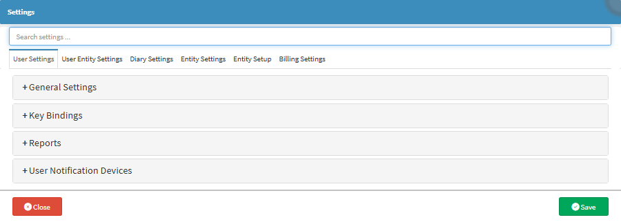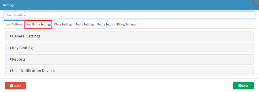 💡Please Note: User Entity Settings will always override Entity and Diary settings for the specific User.