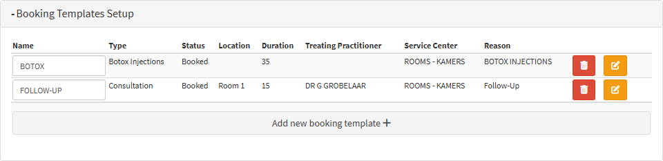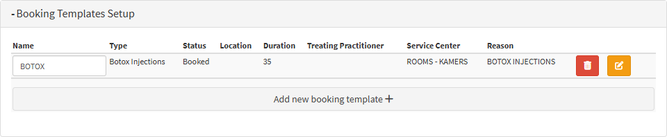 Edit button:If you wish to change or remove any information on the selected booking template, this button lets you edit the booking template.