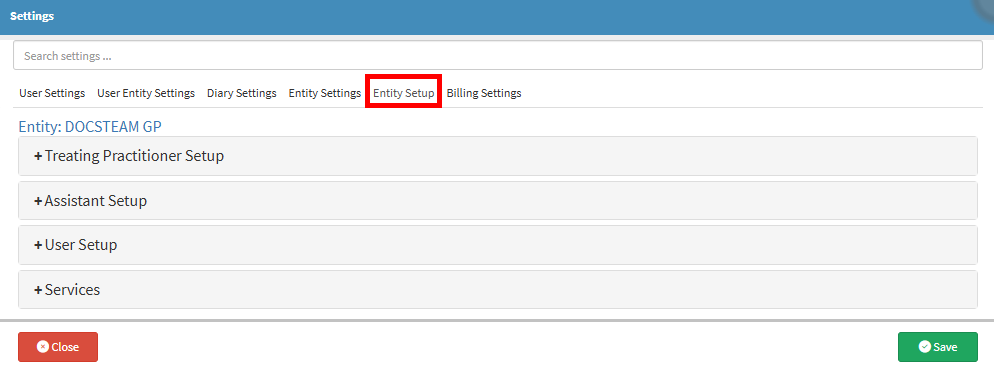 - Click on the Treating Practitioner Setup panel to expand the options.