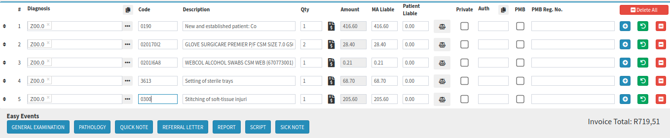 A combination is also known as a Macro, Basket or Protocols. This is a set of stock, procedures and/or consultations that are always used for a specific treatment. The combination is set up for a treatment with the necessary items and tariff codes.