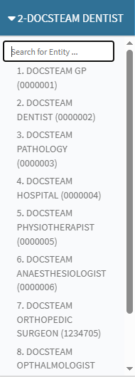 💡Please Note: The Entities displayed are determined by the Practice’s configuration, each Practice Number is configured as a separate Entity.