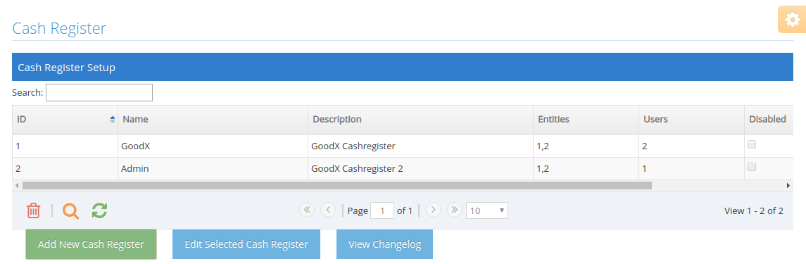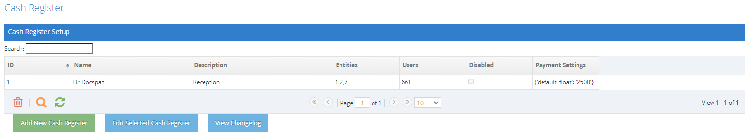 - The Cash Register that has been set up will display on the Cash Register Setup list.