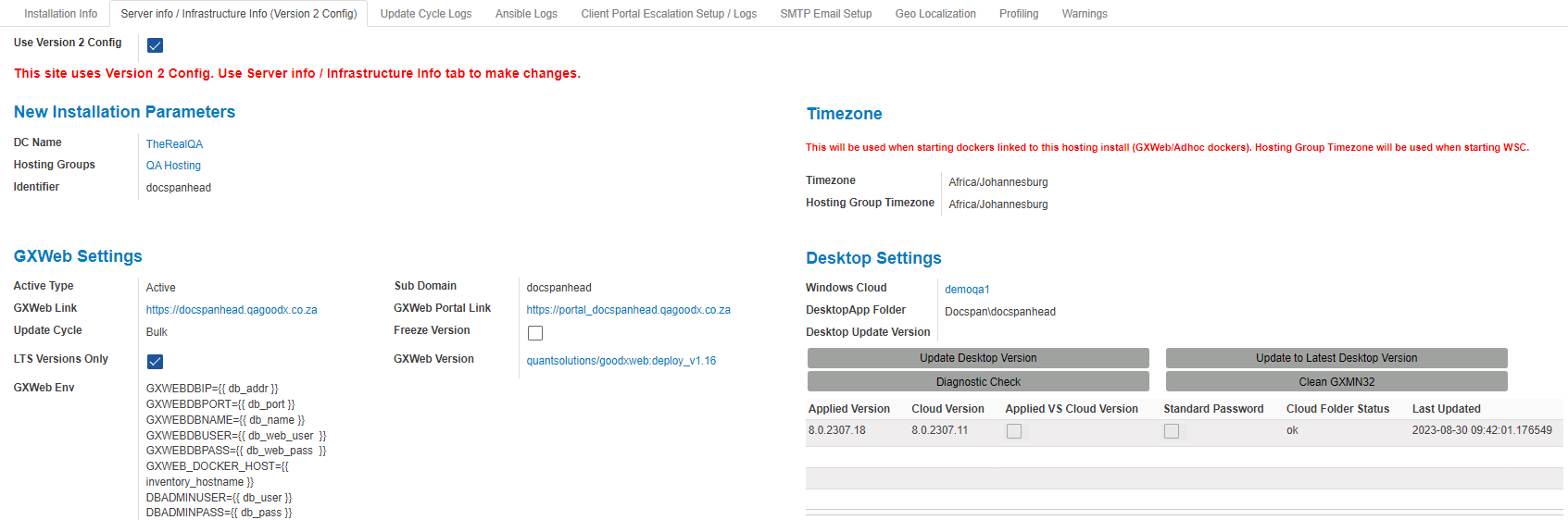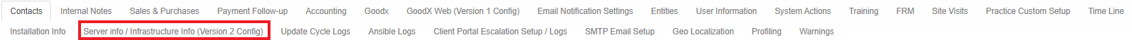 - Click on the Server info/Infrastructure Info (Version 2 Config) tab.