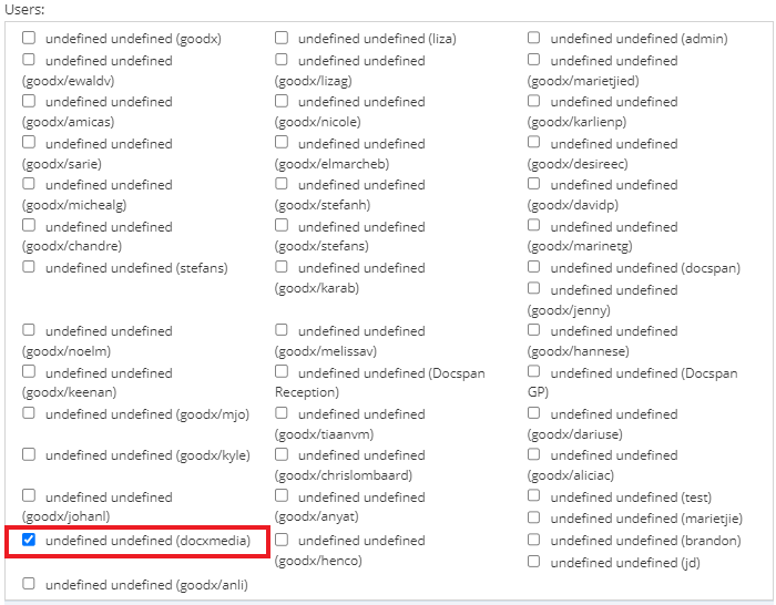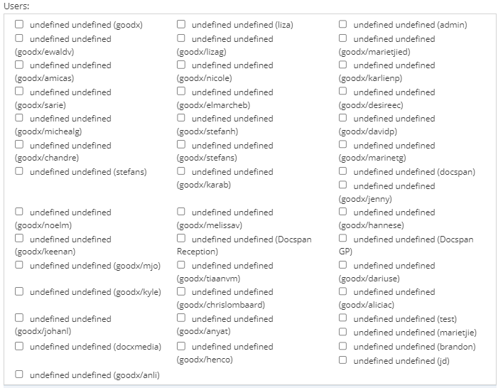 - All Users, which have been registered on the Practice's system, will appear on this list.