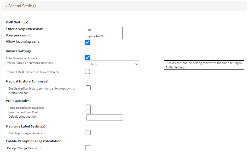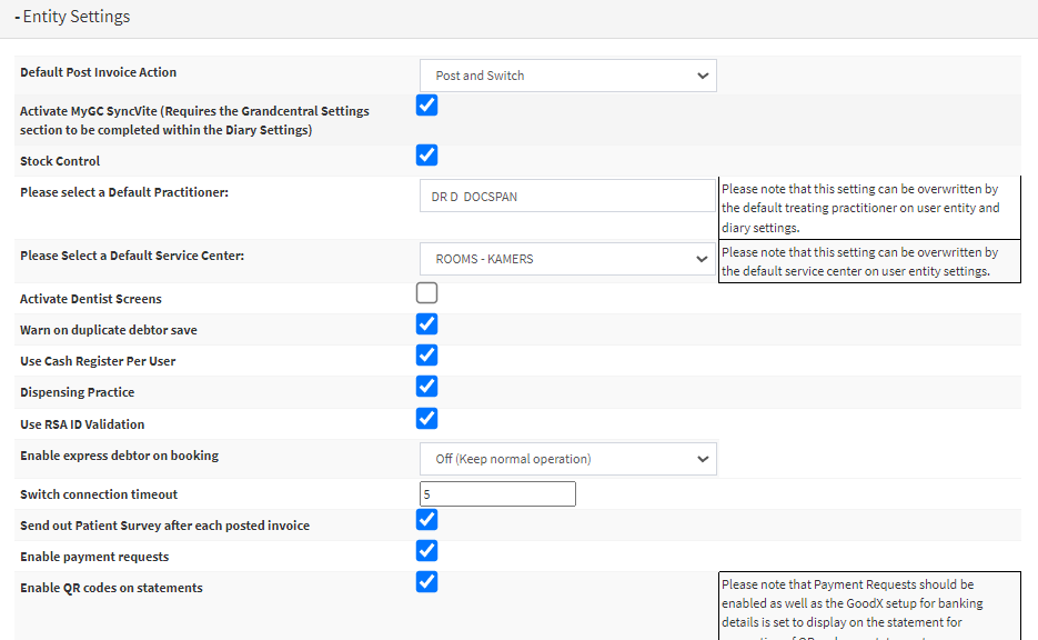 Please Note: This amount of options will only be available if the Practice has more then one Entity.
