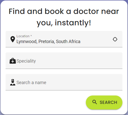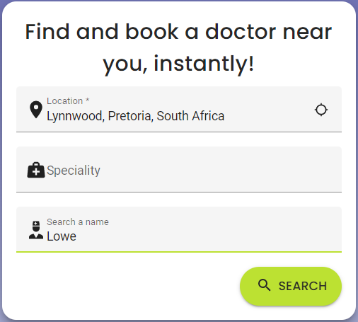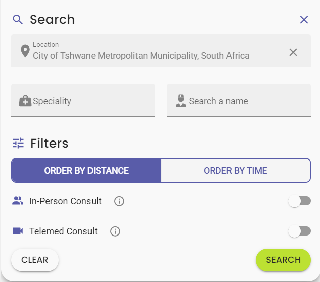 - Speciality: Search by Speciality type, for example, General Practitioner, Endocrinologist, etc.