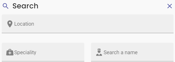 Please Note: If no location has been chosen when searching by Speciality or name, the Near Me button will default as a Search button, but only with results in and around the user's current location.