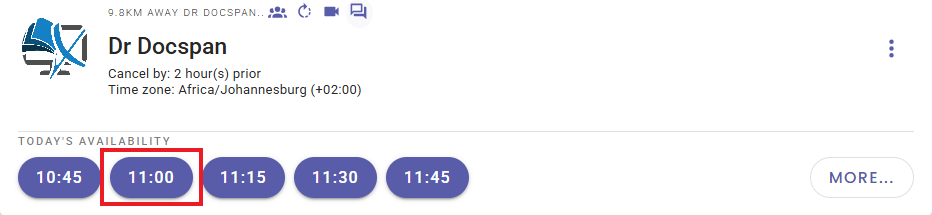 ?Disclaimer: The Practitioner's calendar will update to show the adjusted time for the booking if their timezone differs from yours.
