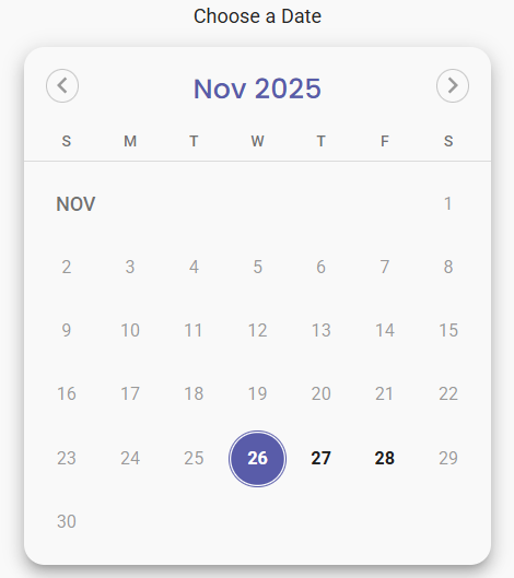 - Click on the desired Date on the calendar to select the day the booking will be made for.