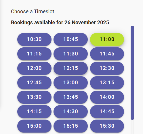 - Click on the Timeslot button of the desired time to make a selection for that specific time.