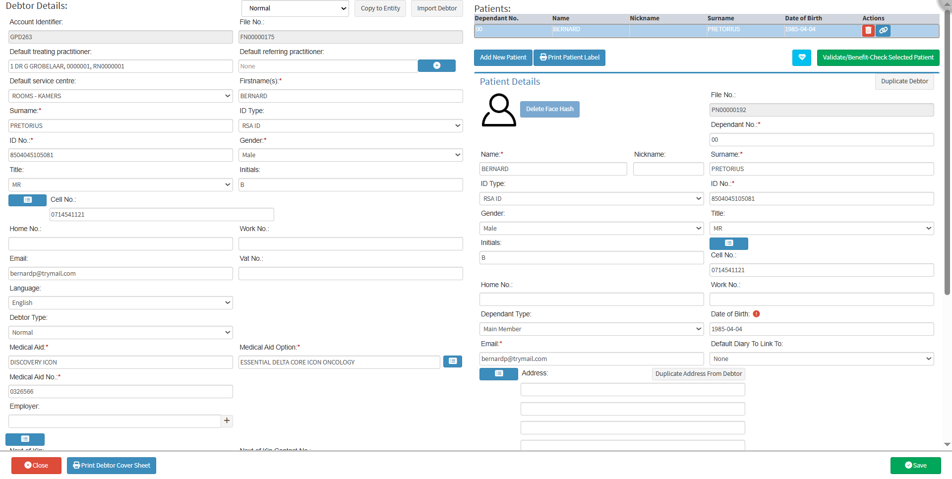 The Delete Face Hash button allows the permanent deletion of a Patient’s stored facial image from the system database. Once deleted, the Patient can no longer be identified using facial recognition within the Patient Identifier tab.