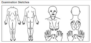 In the Physical / Medical Examination, the Doctor examines the Patient for any possible signs or symptoms of a Medical condition or accident. In the Examination section, the Doctor can add images related to the illness or injury of the Patient or mark the sketches provided after examining the Patient.