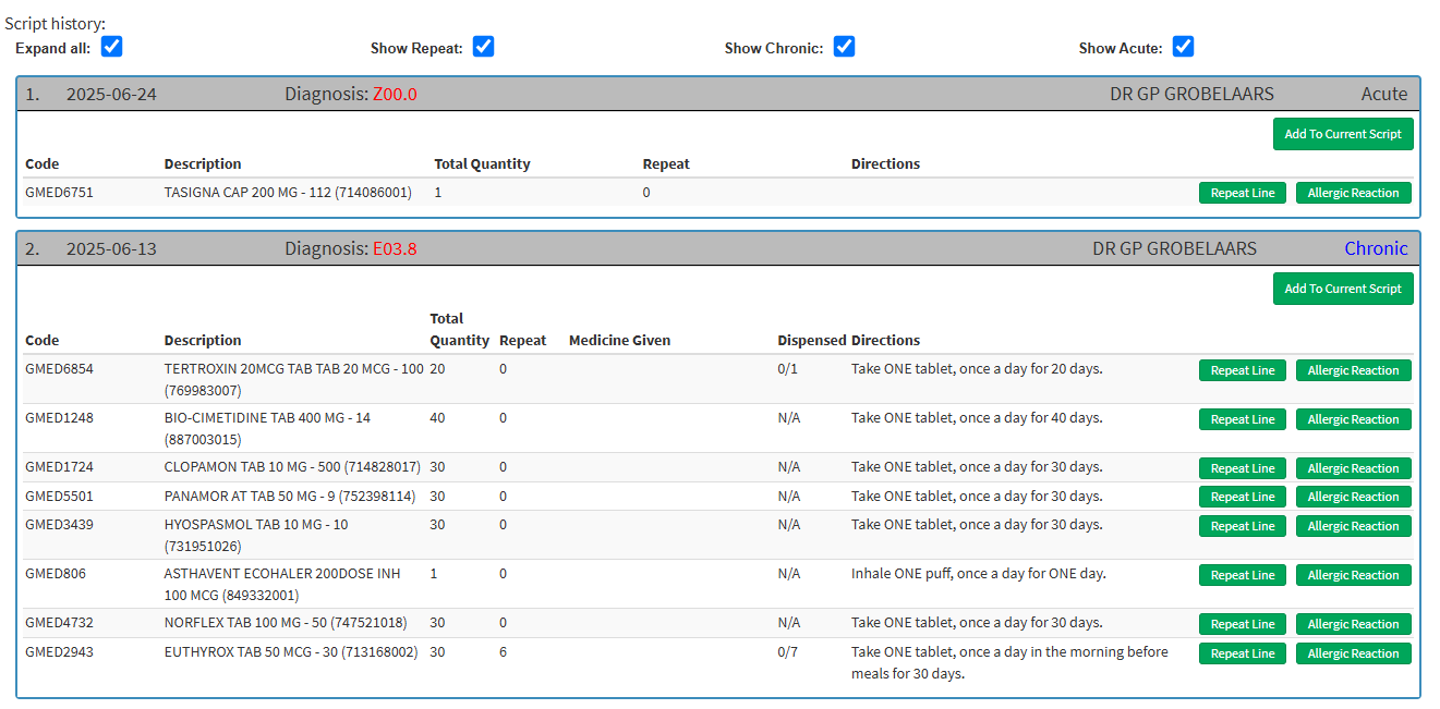 - Block if No Diagnosis: When enabled, this option prevents a user from generating a Script if no diagnosis has been captured on the booking. This ensures that all prescriptions are linked to a valid diagnosis before being issued, reducing the chances of rejected claims.