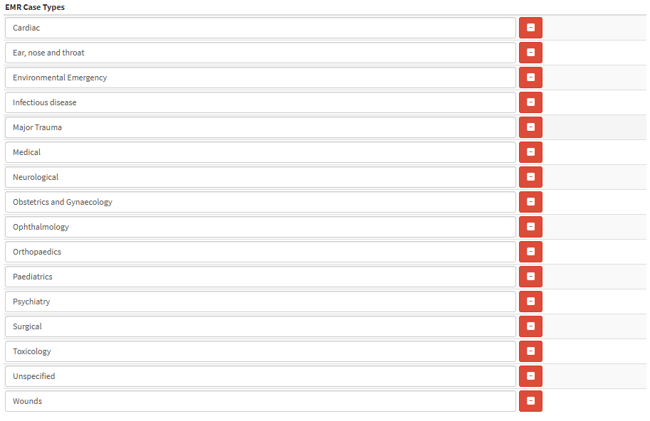 - For more information regarding the EMR Case Types screen, please refer to the user manual: EMR Case Types.