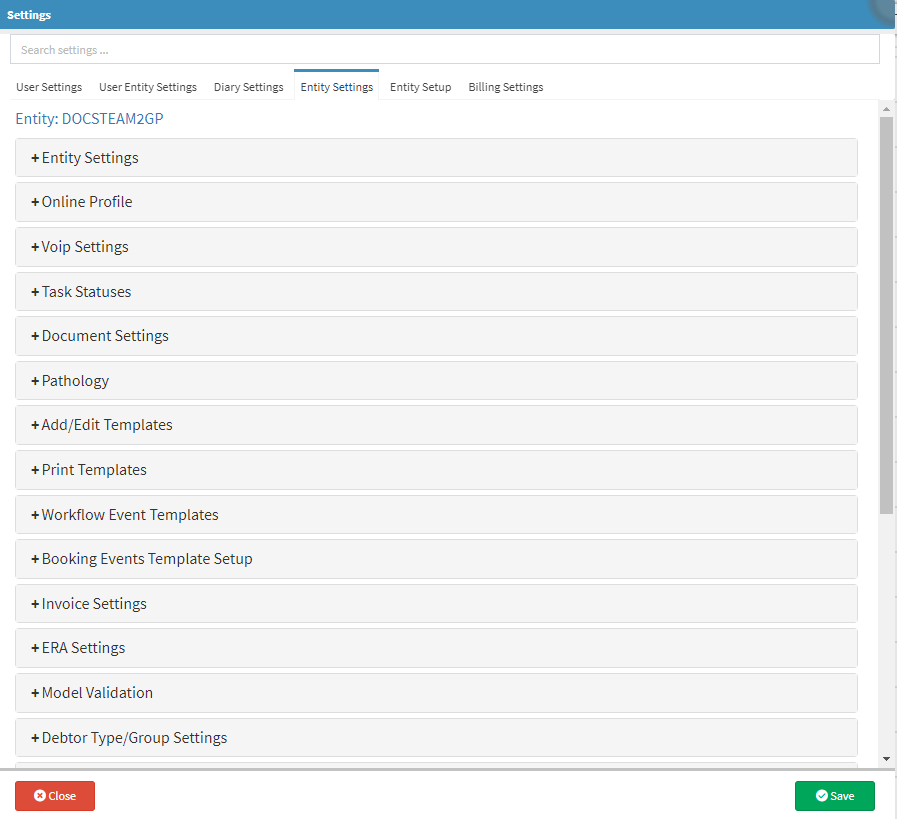 - Click on the Entity Settings tab.