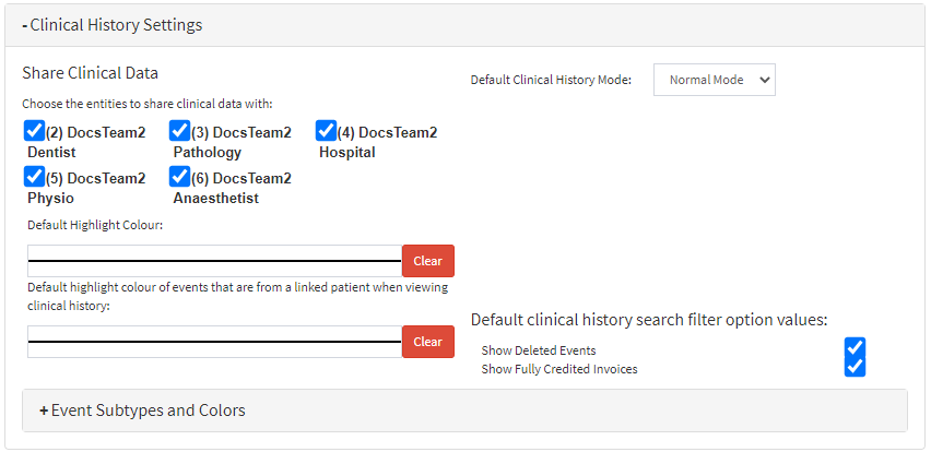 - Click on the Clinical History Settings panel.