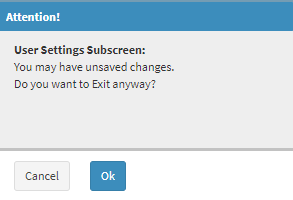 - An Attention pop-up will open to advise the user that they may have unsaved changes.