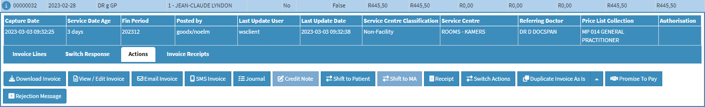 Double Click on the Invoice that was rejected on which a Medical Aid Rejection Message will be added.