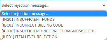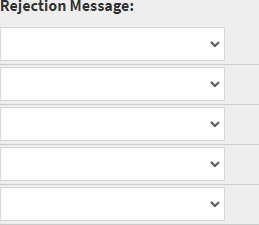 The selected option will display in the corresponding Rejection Message field.