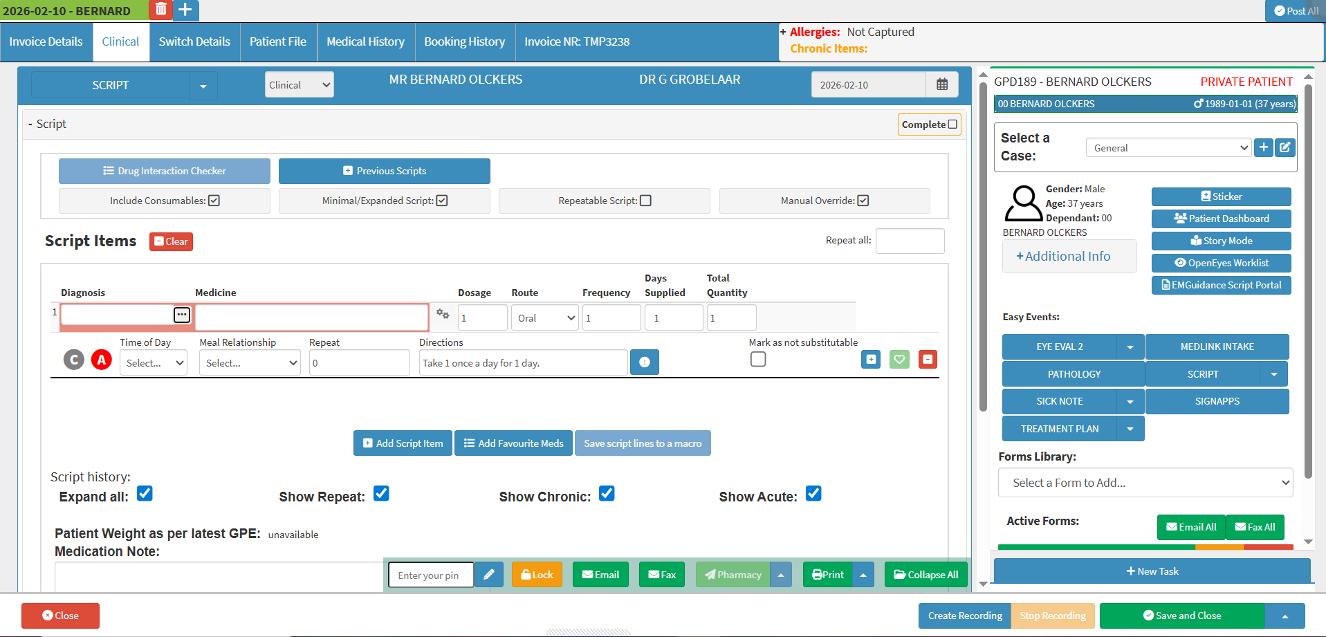 When a Practitioner creates a Script for the Patient, the system will prompt the Practitioner to add the Patient to a Smart Sticker Protocol if the ICD10 code used on the Script matches the ICD10 code used to set up the Smart Sticker Protocols. Linking a Patient to a Smart Sticker Protocol from the Script saves time and efficiently adds Smart Sticker Protocols to Patients quickly.