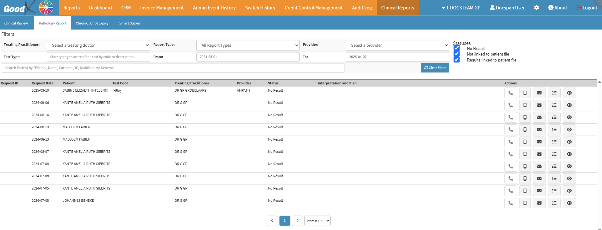 - For more information on how to navigate to the Clinical Reports screen, please refer to the user manual: Reports Segment.