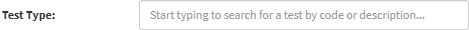 - Click on the Test Type field to enter the details of the Test you want to search for using the Test Code or Description.