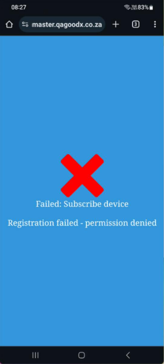 ?Please Note: If the Register with a QR Code is unsuccessful, a Message will appear that it has failed. You will need to retry.