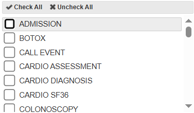 - Select the Clinical Event Types to be filtered within the Patient File screen.