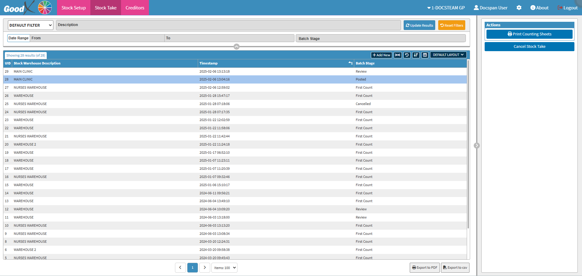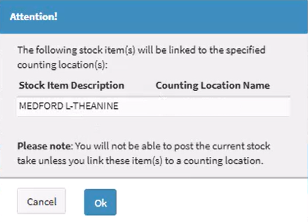 💡Please Note: The Counting Locations on the list, are the ones that have been set up for the Warehouse where the Stock Take was done.