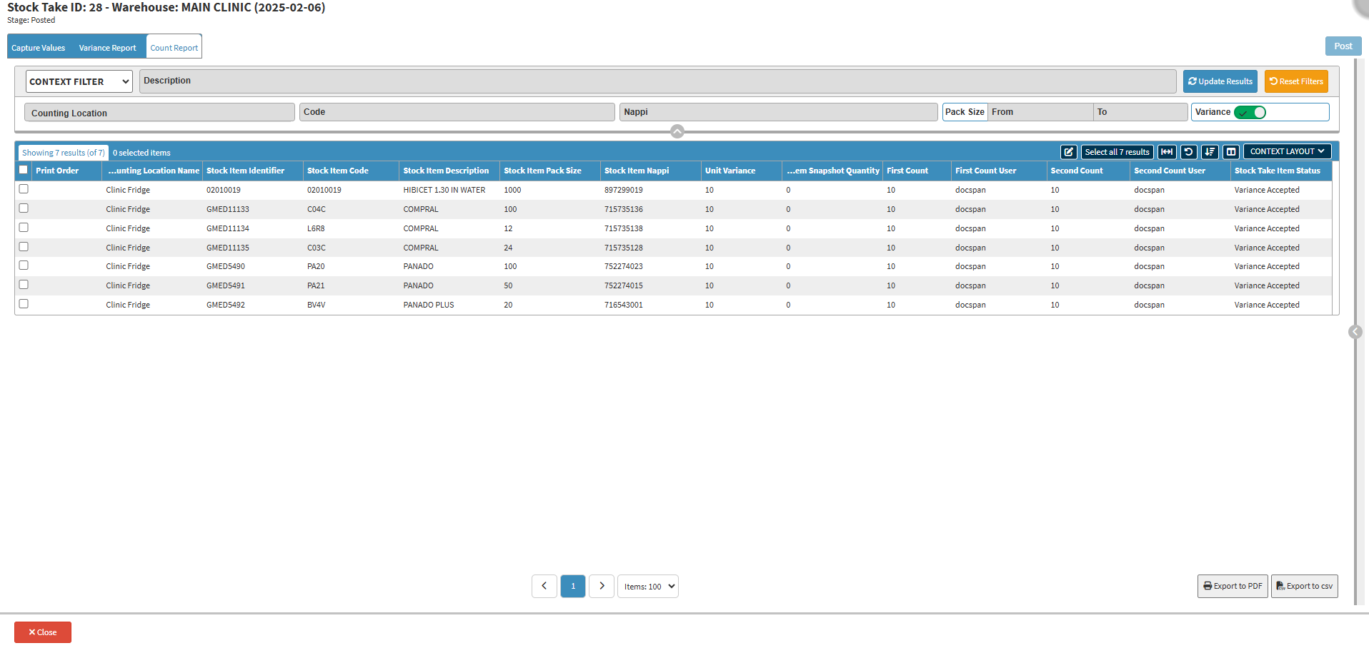 💡Please Note: A Stock Take: Count Report will only be visible to a Super User once a Stock Take has been posted.