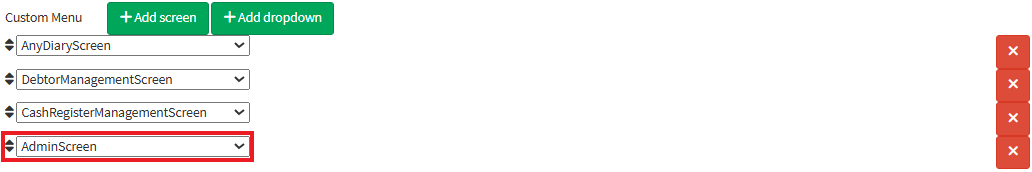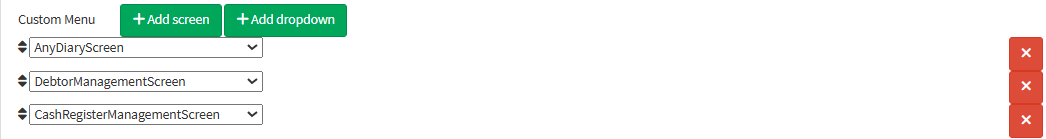 A drop-down field will be added to the list, where a few screens can be placed under a Custom drop-down menu.