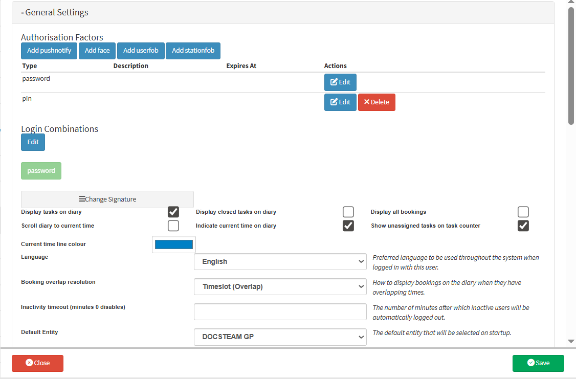 Click on the Save button to save the settings that have been set up and return to the main Diary screen.